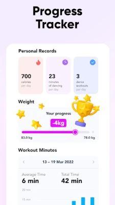 Fitness motivation is the key to success, and Dancebit keeps you inspired every step of the dance fitness journey. Track your dance workouts, monitor your achievements, set new fitness goals, and get that dream body!