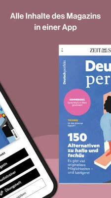 Einfach besser Deutsch lesen, hören, üben – mit der Deutsch-perfekt-App. Im eMagazine finden Sie alle Inhalte von Deutsch perfekt auf Ihrem Bildschirm. Lesen und hören Sie jeden Monat Neues über Gesellschaft, Politik und das Leben in Deutschland, Österreich und der Schweiz – in einfachem Deutsch auf verschiedenen Sprachstufen ab A2. Darüber hinaus finden Sie in der App den Audiotrainer und das Übungsheft von Deutsch perfekt.