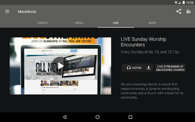 The Macedonia Church of Pittsburgh app is the ultimate mobile church app. LIVE streaming, Bible, note-taking, feature videos and more within this app. This app will also allow you to stay connected with upcoming news via push notifications.