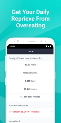 It also has an Abstinence Date Calculator that will help you track how long you've abstained from Overeating by total hours, days, months, and years.