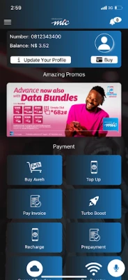 “MyMTC Namibia” App is an all in one self-care app that gives you full control in managing your phone account, monitor your usage pattern, manage your data usages and subscribe to products and services from your mobile device, all on-the- go. “MyMTC Namibia” provides prepaid and contract customers with an easy-to-use, convenient portal to manage your mobile needs. Check your airtime and bundle balances, and purchase bundles. With MyMTC Namibia app, you can to do top up airtime, do 2. Data bundles purchase and subscribe to Aweh, view specials & promotions, locate and get direction to the nearest MTC Mobile Homes or dealership and more.