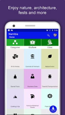 All features and images in Namibia Country Guide are available offline. This Namibia Travel App is for the globetrotters who go by the quote, “All journeys have secret destinations of which the traveler is unaware”. With Namibia Tourist Guide, Unveil the Veiled places, Connect with plethora of people, understand culture, art and history, Speak with natives in their language, relish the authentic food and take delight in the festivities.