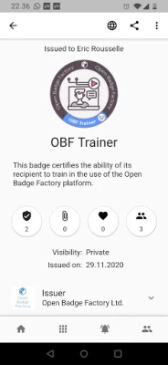 This application is a mobile version of Open Badge Passport (https://openbadgepassport.com), the free, easy-to-use and standard online Open Badge platform developed by Open Badge Factory Ltd. (https://openbadgefactory.com)