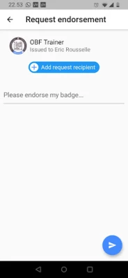 Open Badge Passport (OBP) is a multilingual (English, French, Finnish) personal learning environment and a social platform used by more than 100 000 badge earners around the world to receive, store, enrich, and share their badges easily in the OBP community, or into social media services. In OBP, users can apply for new badges advertised by hundreds of organisations, network with other community members, and endorse each other for the badges they earn.