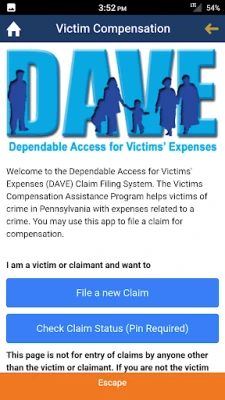 This application features: - An interactive map that allows you to search for victim service organizations closest to you - Detailed information about the rights of crime victims in Pennsylvania and the services available to them - Access to information concerning a claim already filed with the Victims Compensation Assistance Program - The ability to message the Pennsylvania Office of Victim Services for assistance
