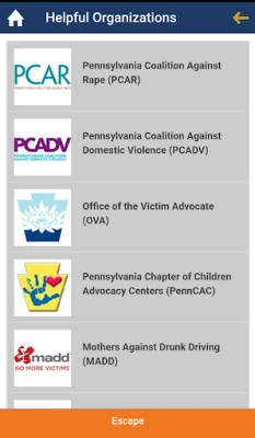 This application provides information to victims of crime in Pennsylvania on how to find organizations that can help them after they have been victimized and the rights and services available to them. In addition, crime victims can use this application to contact Pennsylvania's Victims Compensation Assistance Program, to find out information about an already filed crime victims' compensation claim.
